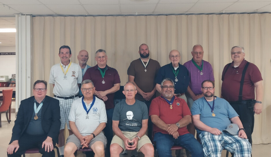 Presented here are eleven of our officers for the Fraternal Year 2025-26. Seated left to right is Distict Deputy - Michael Appell, Treasurer - Bill Rogers, Lector - Steve Driscoll, Grand Knight – Roberto Avina, Deputy-Grand Knight – Tony Bieneman